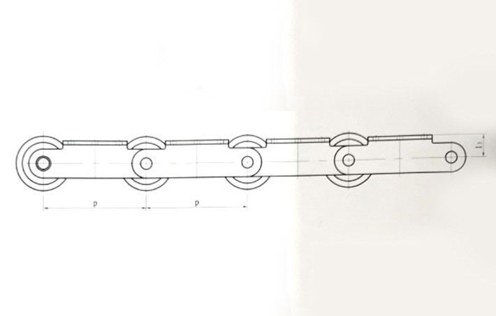 平板輸送機(jī)的鏈條,由帶K型附件的滾子套筒鏈和方管鋼組成,該鏈條在負(fù)載運(yùn)行時(shí),滾子和鏈條導(dǎo)軌之間是滾動兼滑動的摩擦運(yùn)動形式。